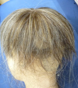 <白髪を少し増やした状態=植えた白髪は毛が長いのでお客様のに合わせてカットする予定>